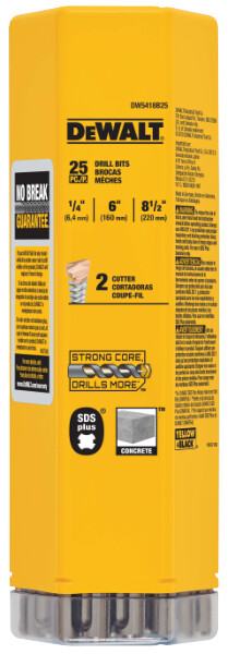 SDS Plus 2 Cutter Drill Bits have a strong tapered core to help resist flute breaks, especially when drilling deep holes. For optimal drilling speeds, the two-stage flute design features a variable helix pattern that quickly moves debris away from the contact zone.
